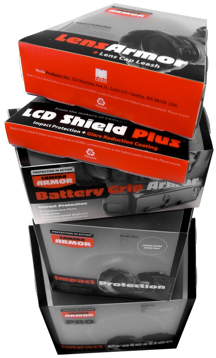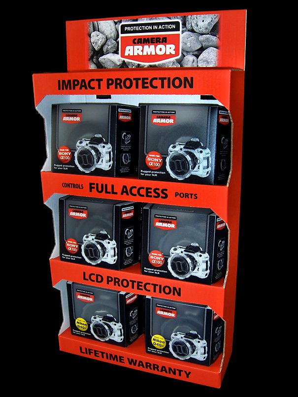 Camera Armor. Point-Of-Purchase design. Art direction, design and production, photography, illustration, typography