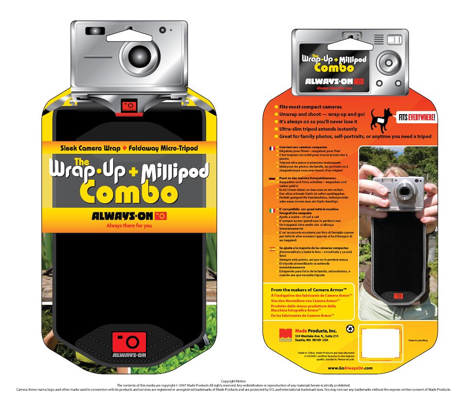 Always On™ The Wrap-Up + Millipod Combo. Packaging design. Art direction, design and production, photography, illustration, typography