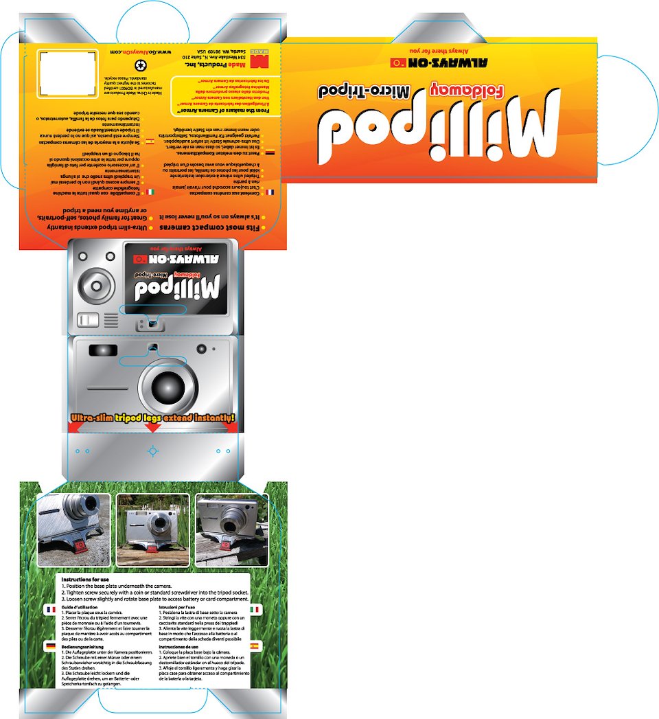 Always On™ Millipod. Packaging design. Art direction, design and production, photography, illustration, typography