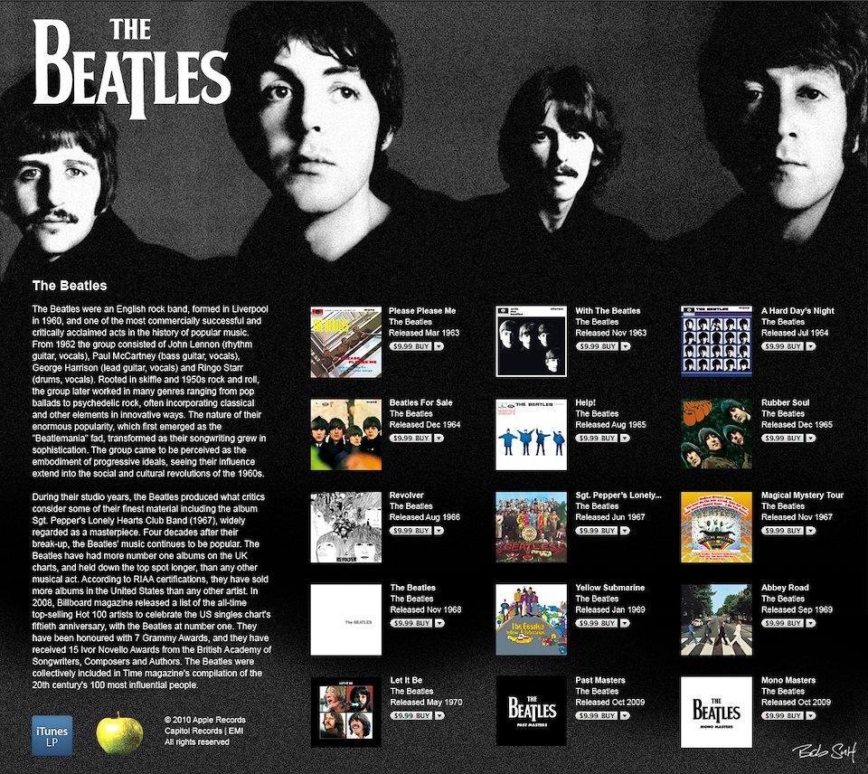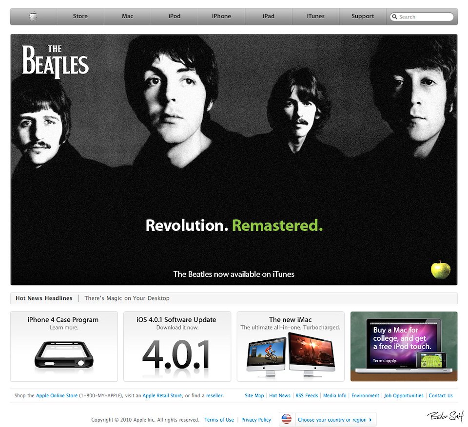 Apple homepage, The Beatles on iTunes website. Art direction, design and production