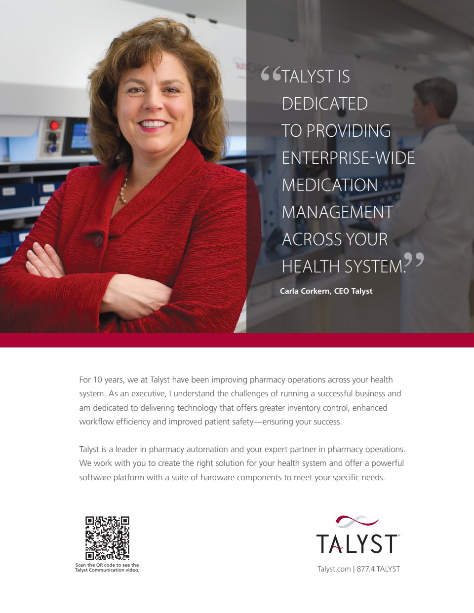 Talyst was a company that specialized in pharmacy automation and medication management systems, primarily for hospitals and long-term care facilities. They provided solutions to improve inventory control, workflow efficiency, and patient safety. In 2017, Talyst was acquired by Swisslog Healthcare.
